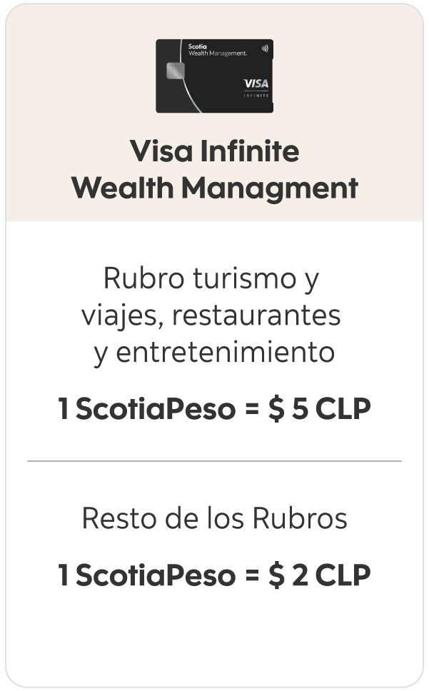 Con tus Tarjetas de Crédito Visa Infinite Wealth Management acumulas 1% del monto de tu compra.